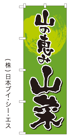 3368 のぼり旗 山菜 自然の恵み 緑地(グリーン) 黒文字(ブラック) 素材:ポリエステル サイズ:W600mm×H1800mm